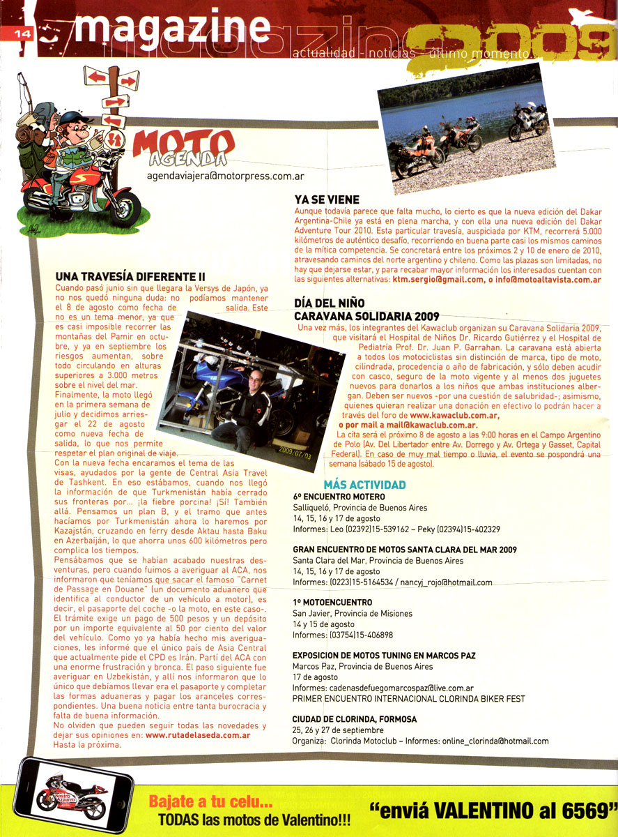 | Revista La Moto - Agosto de 2009 - Buenos Aires - Argentina |